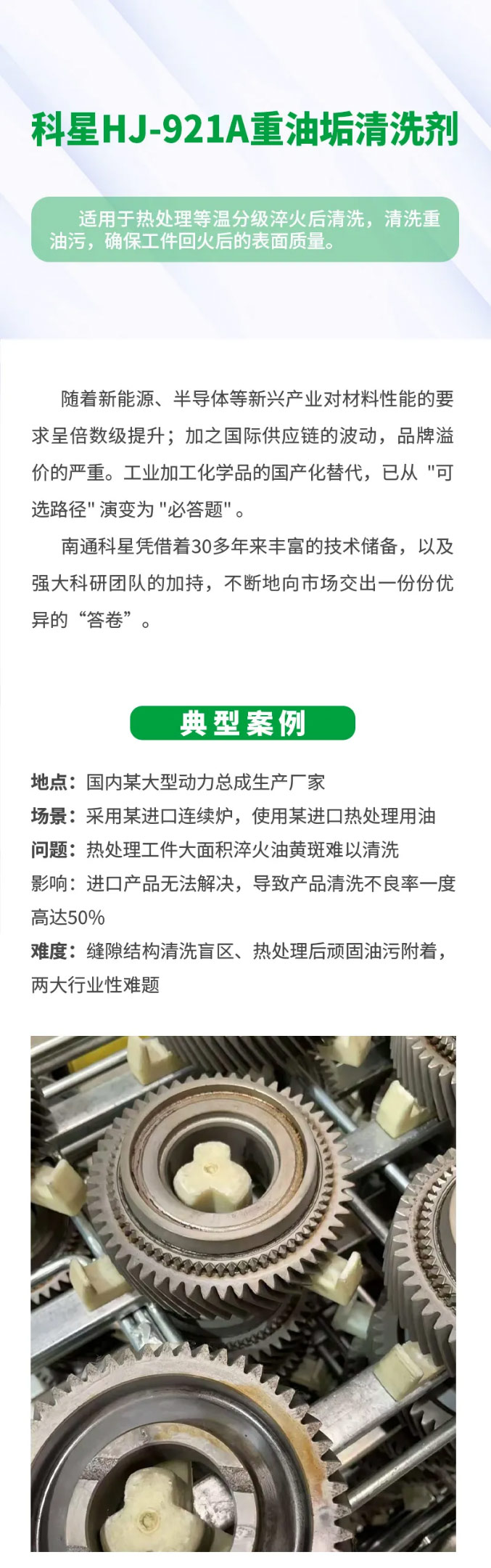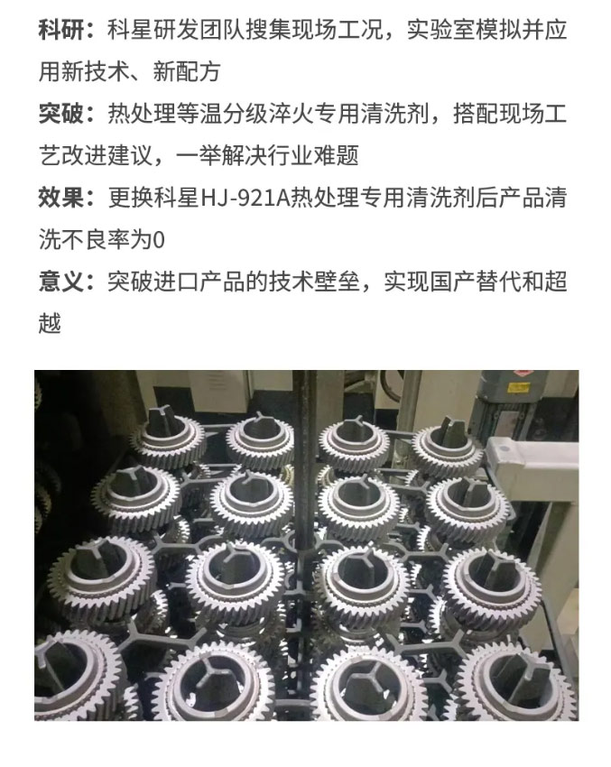 解決熱處理工藝清洗難題,爭做國產替代行業(yè)典范——科星HJ-921A重油垢清洗劑